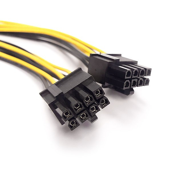 برای اتصال برق کارت گرافیک به پاور معمولی یا پاور سرور نیاز به کابلی وجود دارد که از یک طرف سوکت 6 پین و از سوی دیگر دو سوکت 8 پین داشته باشد. این کابل باید مقاومت دمایی بالایی داشته باشد و همچنین حداقل توان عبور جریان 3 آمپر برق 12 ولت را داشته باشد. کابل بکار رفته در این محصول کابل 0.75 تمام مس هست که توان عبوری تا 10 آمپر را داراست. همچنین طول این کابل 140 سانتی متر در نظر گرفته شده که آزادی عمل لازم را برای نصب کارت گرافیک به شما می دهد. لازم به ذکر است که سوکت های این محصول از نوع نسوز انتخاب شده اند تا در صورت بروز هر حادثه ای کمترین آسیب متوجه دستگاه شود . این کابل داری 40 سانتی متر سیم بین 2 سوکت(6+2) و 6 پین خود می باشد. همچنین این کابل به دلیل داشتن 140 سانتی متر طول برای ریگ های کارت گرافیک 12 کارت بسیار مناسب می باشد. از این کابل می توانید در رایزر های کارت گرافیک به دلیل داشتن سوکت (6+2) نیز استفاده کنید.