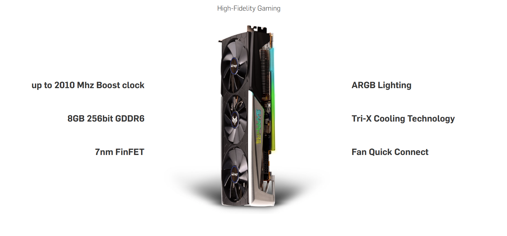 جهت خروجی تصاویر از 2 پورت HDMI و2 پورت Display بهره گرفته است. مصرف برق 265 وات آن توسط دو پین 8 تایی تامین و متصل می گردد. منبع تغذیه پیشنهادی این کارت حرفه ای 650 وات می باشد. 3 فن قدرتمند با بلبرینگ دوتایی که با روغن کاری مناسب باعث طول عمر بیشتر و خنک سازی بهتر این کارت شده است. کارت گرافیک SAPPHIRE NITRO+ RX 5700 XT حداکثر تجربه بازی 4K را برای گیمر های PC ارائه می دهد.